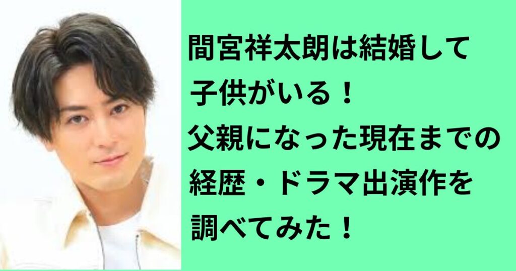 間宮祥太朗は結婚して子供がいる!父親になった現在までの経歴・ドラマ出演作を調べてみた!【2026年最新】
